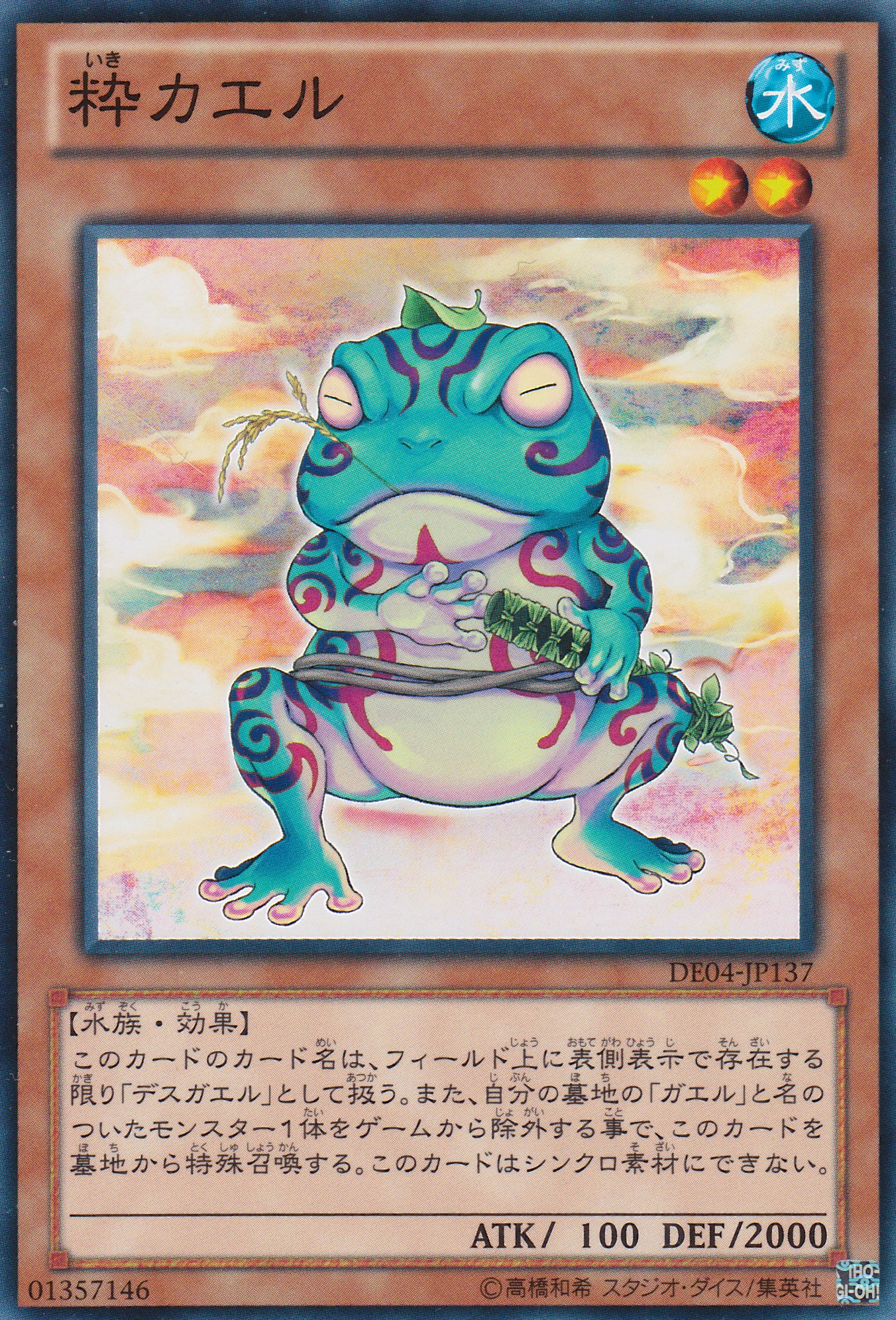 此卡在場上表側表示存在為限,卡名當作「死亡青蛙」。 另外,可以將我方墓地存在1體冠有「青蛙」之名的怪獸從遊戲中除外,墓地存在的此卡在場上特殊召喚。 此卡不能當作同步素材。