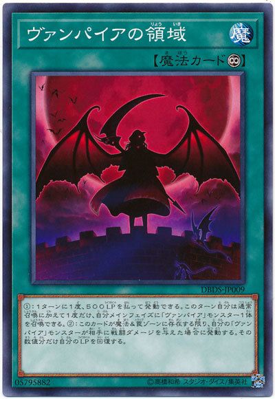 (1): 1回合1次,可以支付500分生命值發動。 此回合,我方在通常召喚外僅1次,可以在我方主要階段時追加召喚1體「吸血鬼」之名的怪獸。 (2): 此卡於魔法&陷阱區域存在的狀態,我方的「吸血鬼」之名的怪獸給予對手戰鬥傷害的場合發動。 我方生命值回復該數值。