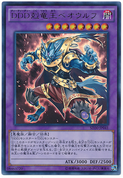 「DDD」之名的怪獸+「DD」之名的怪獸 (1): 此卡於怪獸區域存在為限,我方的「DD」之名的怪獸攻擊守備表示的怪獸的場合,給予對手該攻擊力超過守備力的數值的戰鬥傷害。 (2): 我方的準備階段時可以發動。 雙方魔法&陷阱區域的所有卡片破壞。