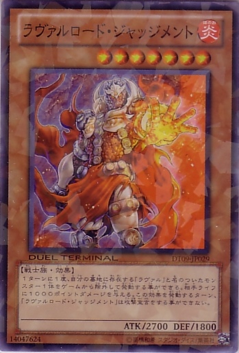 1回合1次我方主要階段時,可以移除我方墓地存在的1體「熔岩」之名的怪獸來發動。給予對胡1000分傷害。此效果發動的回合,「熔岩王制裁者」不能攻擊宣言。