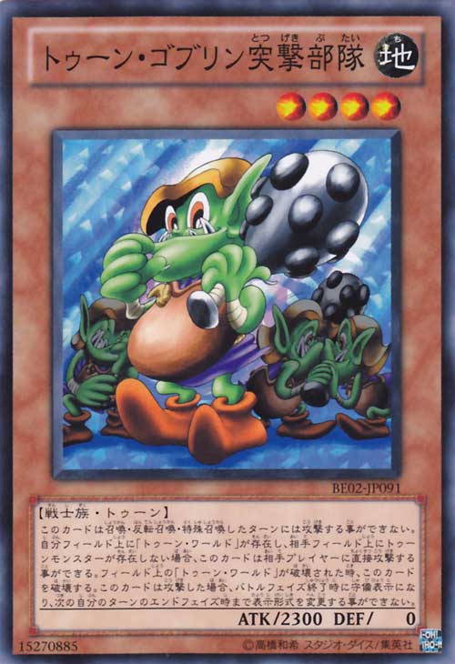 此卡表側表示存在場上為限,此卡召喚.反轉召喚.特殊召喚的回合不能攻擊,場上的「卡通世界」被破壞時此卡破壞,若我方場上表側表示存在「卡通世界」,對方場上不存在卡通怪獸時,此卡可以直接攻擊,此卡攻擊的戰鬥階段結束時變為守備表示,到我方下回合結束階段時為止此卡不能變更表示形式。