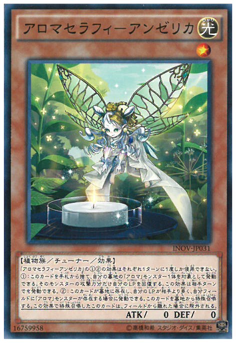 「芳香治天使-歐白芷」的(1)(2)效果1回合僅能各使用1次。<br/>(1):<br/>可以捨棄手札的此卡,以我方墓地1體「芳香」之名的怪獸為對象發動。<br/>我方生命值回復該怪獸的攻擊力數值。<br/>此效果也可以在對手回合發動。<br/>(2):<br/>此卡於墓地存在,我方生命值比對手多且我方場上有「芳香」之名的怪獸存在的場合可以發動。<br/>從墓地將此卡特殊召喚。<br/>以此效果特殊召喚的此卡離場的場合除外。