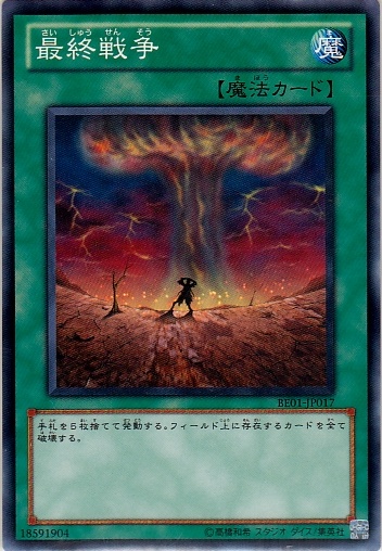捨棄5張手札來發動。場上的卡片全部破壞。
