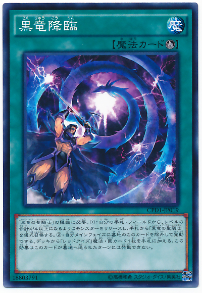 「黑龍聖騎士」降臨必需。 (1): 從我方手札、場上解放合計等級4以上的怪獸,從手札將「黑龍聖騎士」儀式召喚。 (2): 我方的主要階段時可以將墓地的此卡除外發動。 從牌組將1張「真紅眼」之名的魔法、陷阱卡加入手札。 此效果不能在此卡送入墓地的回合發動。