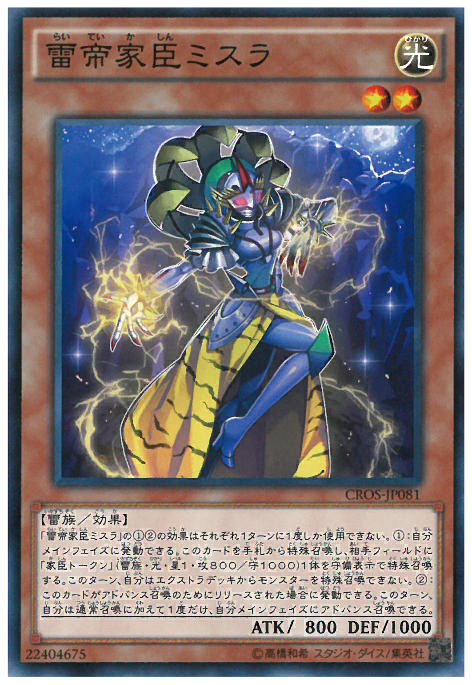 (1)我方主要階段時可以發動。從我方手札特殊召喚此卡,以守備表示特殊召喚1體「家臣代幣」(雷族.光.等級1.攻800/守1000)到對方場上。此效果發動的回合我方不能從額外牌組特殊召喚怪獸。