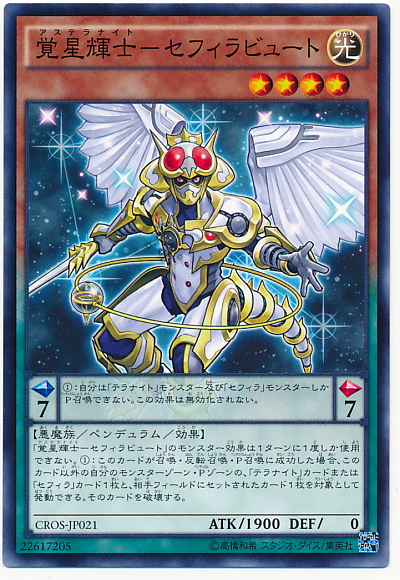 此卡召喚、反轉召喚、擺動召喚成功的場合,可以我方怪獸區域、擺動區域的1張除此卡以外的 「星因士/星輝士」或是「天球」之名的卡片以及對手場上1張覆蓋的卡片為對象發動。