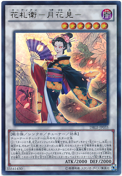 協調+協調以外的怪獸2體(1):1回合1次,我方的主要階段時可以發動。從牌組抽1張牌,並給雙方確認。該卡片是「花札衛」之名的怪獸的場合,可以將該怪獸無視召喚條件特殊召喚。此回合以此效果特殊召喚的怪獸可以直接攻擊。發動此效果的場合,下個我方回合的抽牌階段跳過。(2):場上的此卡作為同步素材的場合,包含此卡在內的所有同步素材怪獸的等級變為2。
