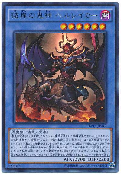 (1)1回合1次,可以從我方手札將1體「彼岸(燃燒深淵)」之名的怪獸送入墓地,選擇對方場上1體表側表示怪獸來發動。到回合結束時為止選擇的怪獸攻擊力.守備力下降與代價送入墓地的怪獸攻擊力.守備力各自相等的數值。此效果在對方回合也可以發動。