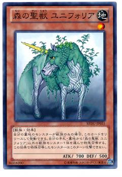 我方主要階段時,若我方墓地的怪獸只有獸族而沒有其它種族,可以解放此卡來發動。從我方手札.墓地特殊召喚1體「森之聖獸葉綠獨角獸」以外的獸族怪獸。此效果特殊召喚的怪獸此回合不能攻擊。