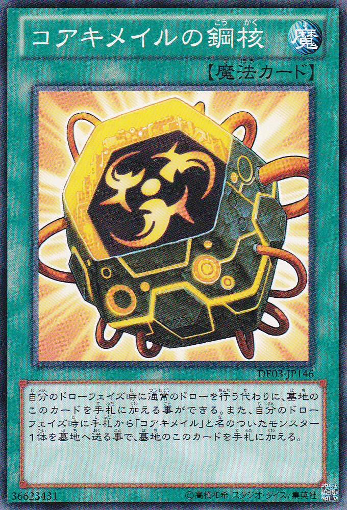 若此卡存在墓地,我方抽牌階段時,可以代替通常抽牌來發動。此卡加入手札。我方抽牌階段時,若此卡存在墓地,則可以將我方手札1體「核成」之名的怪獸送入墓地來發動。此卡加入手札。