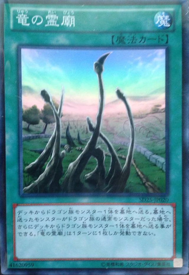 從我方牌組將1張龍族怪獸送入墓地。若送入墓地的是龍族通常怪獸,則可以再從我方牌組將1張龍族怪獸送入墓地。「龍之靈廟」1回合只能發動1張。