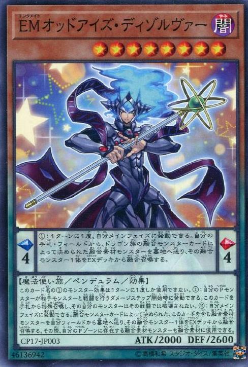 擺動刻度:左4右4擺動效果:1回合1次,我方主要階段時可以發動。從我方手札、場上將龍族融合怪獸卡上決定的融合素材怪獸送入墓地,從額外牌組將該1體融合怪獸融合召喚。怪獸效果:此卡名的(1)怪獸效果1回合僅能使用1次。(1):我方的擺動怪獸和對手怪獸進行戰鬥的傷害步驟開始時可以發動。從手札將此卡特殊召喚,該我方怪獸不會被該次戰鬥破壞。(2):我方主要階段時可以發動。從我方場上將包含此卡的融合怪獸卡上決定的融合素材怪獸送入墓地,從額外牌組將該1體融合怪獸融合召喚。此時,我方擺動區域存在的融合素材怪獸可以當作融合素材使用。