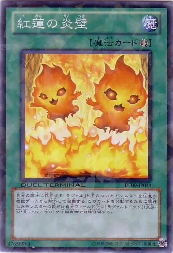 移除我方墓地任意數量「熔岩」之名的怪獸來發動。以守備表示特殊召喚與代價移除的怪獸數量相等的「熔岩代幣」(炎族.炎.星1.攻/守0)到我方場上。