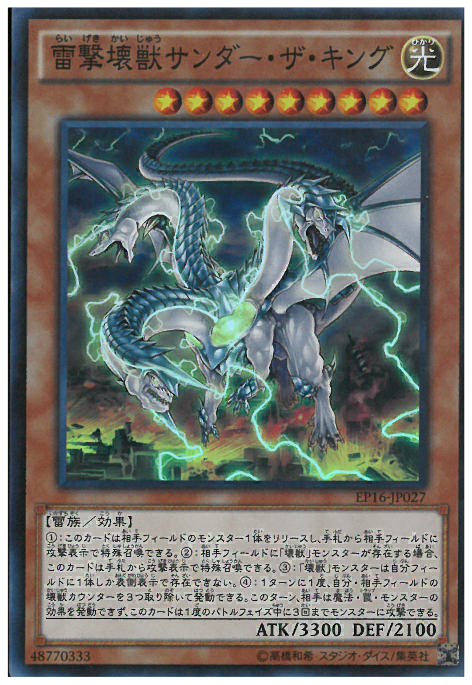 (1):<br/>此卡可以解放對手場上1體怪獸,從手札以攻擊表示特殊召喚到對手場上。<br/>(2):<br/>對手場上有「壞獸」之名的怪獸存在的場合,此卡可以從手札以攻擊表示特殊召喚。<br/>(3):<br/>「壞獸」之名的怪獸在我方場上僅能有1體以表側表示存在。<br/>(4):<br/>1回合1次,可以移除我方、對手場上的3個壞獸計數器發動。<br/>此回合,對手不能發動魔法、陷阱、怪獸效果,此卡可以在1次戰鬥階段中向怪獸進行3次攻擊。