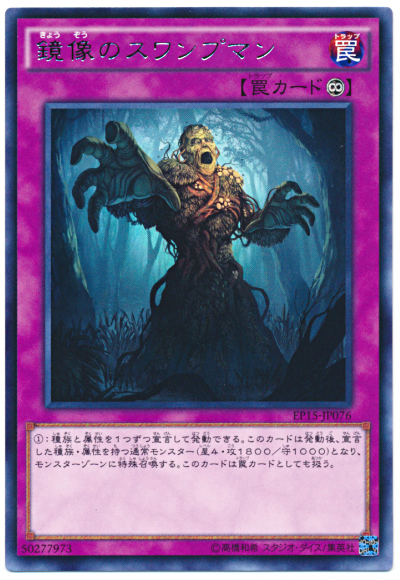 宣言1個種族、屬性才能發動。 發動此卡以後,變為宣言的種族、屬性的通常怪獸(等級4、攻1800/守1000)在怪獸區域特殊召喚。 此卡也當作陷阱卡使用。