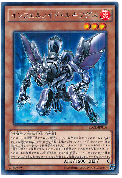 此卡不能通常召喚。 僅能在我方場上所有效果怪獸的等級、階級合計數在8以下時,從我方手札、墓地將1體「煉獄機魔」之名的怪獸除外才能從手札特殊召喚。 (1): 1回合1次,可以場上1體怪獸為對象發動。 該怪獸破壞。 發動此效果的回合,此卡不能攻擊。 (2): 對手回合僅1次,可以解放我方場上1體怪獸,以對手墓地1張卡片為對象發動。 該卡片除外。