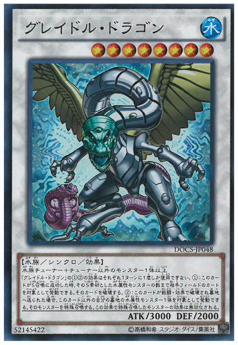 水族協調+協調以外的怪獸1體以上 「灰蠱龍」的(1)(2)效果1回合僅能各使用1次。 (1): 此卡同步召喚成功時,可以對手場上最多到作為此卡的同步素材的水屬性怪獸數量的卡片為對象發動。 該卡片破壞。 (2): 此卡被戰鬥、卡片效果破壞並送入墓地的場合,可以我方墓地1體此卡以外的水屬性怪獸為對象發動。 該怪獸特殊召喚。 以此效果特殊召喚的怪獸效果無效化。