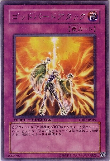 解放我方場上1體鳥獸族怪獸,選擇此卡以外場上2張卡片來發動。選擇的卡片破壞。