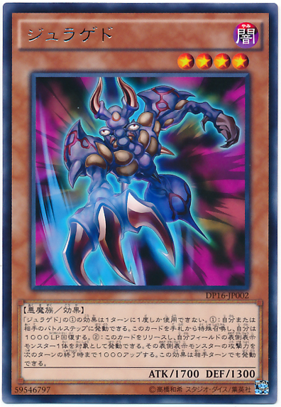 「地獄修羅」的(1)效果1回合僅能使用1次。 (1): 我方或是對手回合的戰鬥步驟時可以發動。 從手札將此卡特殊召喚,我方回復1000分生命值。 (2): 可以解放此卡,以我方場上1體表側表示怪獸為對象發動。 到下個回合結束以前該表側表示怪獸的攻擊力上升1000。 此效果也可以在對手回合發動。
