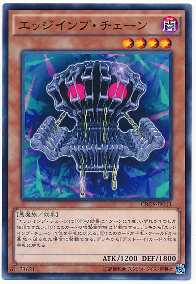 「鋒利魔鎖鏈」的(1)(2)效果1回合僅能使用其中1個1次。 (1): 此卡的攻擊宣言時可以發動。 從牌組將1體「鋒利魔鎖鏈」加入手札。 (2): 此卡從手札、場上被送入墓地的場合可以發動。 從牌組將1張「魔玩具」之名的卡片加入手札。
