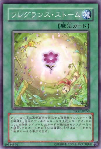 場上表側存在的植物族怪獸1體破壞,從我方牌組抽1張牌。 此效果抽到的卡是植物族怪獸的場合,此卡給雙方確認,我方可以再抽1張牌。