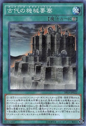 (1):<br/>我方所有「古代的機械」之名的怪獸在召喚、特殊召喚的回合不會被對手的卡片效果破壞,不會成為對手的卡片效果的對象。<br/>(2):<br/>此卡於魔法&陷阱區域存在為限,對手不能對應我方的「古代的機械」之名的卡片效果的發動將魔法、陷阱、怪獸效果發動。<br/>(3):<br/>魔法&陷阱區域的此卡被破壞的場合可以發動。<br/>從我方手札、墓地選擇1體「古代的機械」之名的怪獸特殊召喚。<br/>發動此效果以後,到回合結束以前我方不能特殊召喚「古代的機械」之名以外的怪獸。