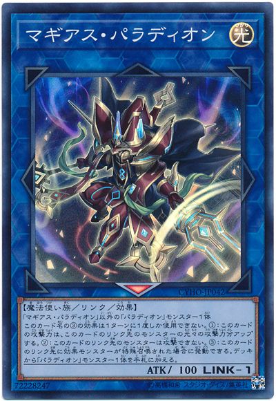連結標記:下 「聖像騎士魔法使」以外的「聖像騎士」之名的怪獸1體 此卡名的(3)效果1回合僅能使用1次。 (1): 此卡的攻擊力上升此卡連結端的怪獸的原攻擊力數值。 (2): 此卡連結端的怪獸不能攻擊。 (3): 此卡連結端有效果怪獸特殊召喚的場合可以發動。 從牌組將1體「聖像騎士」之名的怪獸加入手札。