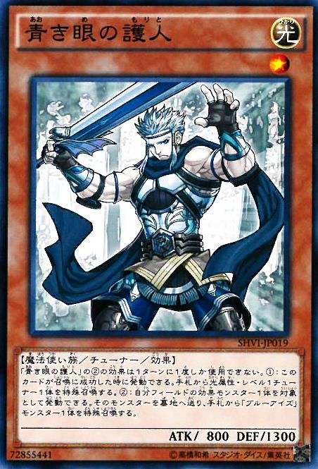 「青之眼的護人」的(2)效果1回合僅能使用1次。 (1): 此卡召喚成功時可以發動。 從手札將1體光屬性、等級1協調特殊召喚。 (2): 可以我方場上1體效果怪獸為對象發動。 該怪獸送入墓地,從手札將1體「青眼」之名的怪獸特殊召喚。