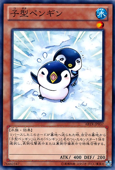 反轉過的此卡從場上被送入墓地時,選擇我方墓地1體「子型企鵝」以外「企鵝」之名的怪獸來發動。以表側攻擊表示或裡側守備表示特殊召喚選擇的怪獸。