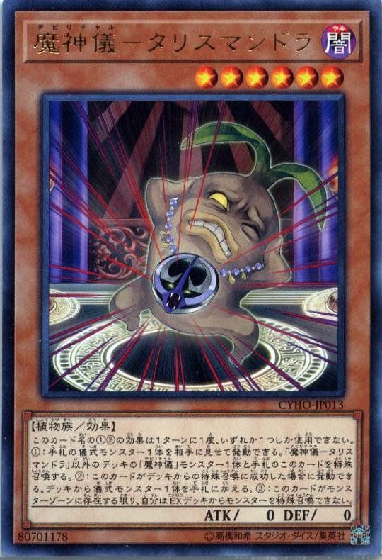 此卡名的(1)(2)效果1回合僅能使用其中1個1次。 (1): 可以將手札1體儀式怪獸給對手確認發動。 從牌組將1體「魔神儀-魔符曼陀拉」以外的「魔神儀」之名的怪獸和手札的此卡特殊召喚。 (2): 此卡從牌組特殊召喚成功的場合可以發動。 從牌組將1體儀式怪獸加入手札。 (3): 此卡於怪獸區域存在為限,我方不能從額外牌組將怪獸特殊召喚。