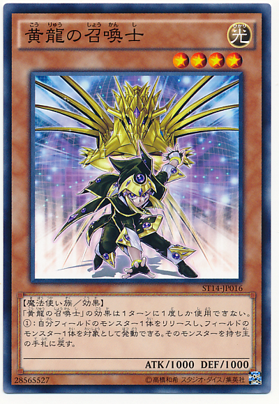 「黃龍的召喚士」的效果1回合只能發動1次。我方主要階段時,可以解放我方場上1體怪獸,選擇場上1體怪獸來發動。選擇的怪獸回到手札。
