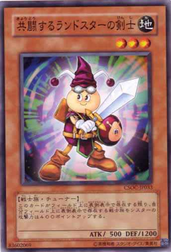 此卡在場上表側存在為限,我方場上表側存在的戰士族怪獸攻擊力上升400點。