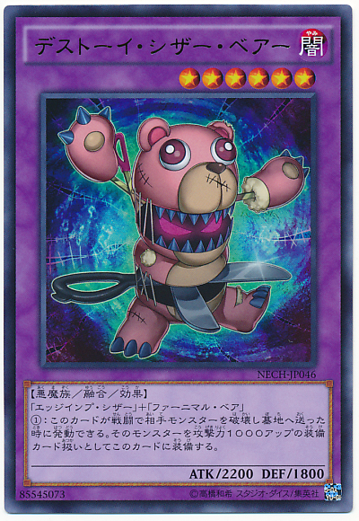 「銳利魔剪」+「絨毛獸熊仔」 此卡戰鬥破壞對方怪獸送入墓地時可以發動。將該被破壞的怪獸當作攻擊力上升1000分的裝備卡裝備在此卡上。