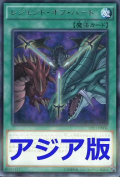 「傳說之心」1回合只能發動1張。支付2000分生命值並解放我方場上1體戰士族怪獸來發動。移除我方手札.墓地最多3張卡名相異「傳說之龍」之名的魔法卡,從手札.牌組.墓地特殊召喚與此效果移除的魔法卡數量相同且卡名相異「傳說的騎士」之名的怪獸。