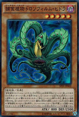 「捕食植物黏蟲草九頭蛇」1回合僅1次能以(1)效果的方法特殊召喚,(2)效果1回合僅能使用1次。(1):此卡可以解放我方或是對手場上1體搭載有捕食指示物的怪獸從手札、墓地特殊召喚。(2):此卡於場上、墓地存在的場合,可以從我方墓地1體將1體此卡以外的「捕食植物」之名的怪獸除外,以場上1體怪獸為對象發動。該怪獸的攻擊力下降500。此效果也可以在對手回合發動。